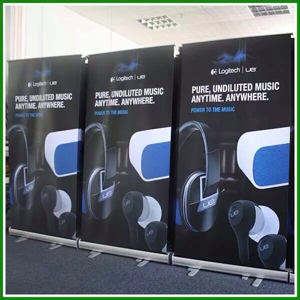 - 产品:全铝合金易拉宝 尺寸:80x200cm 材质:铝合金+pp合成纸